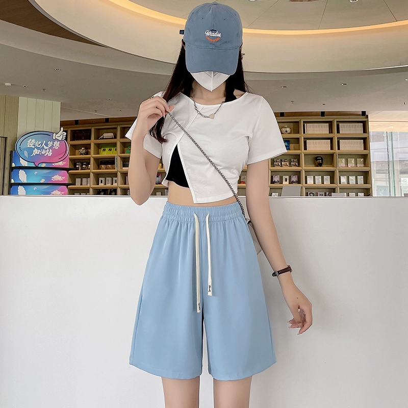 Off-shoulder design summer slimming top short-sleeved T-shirt