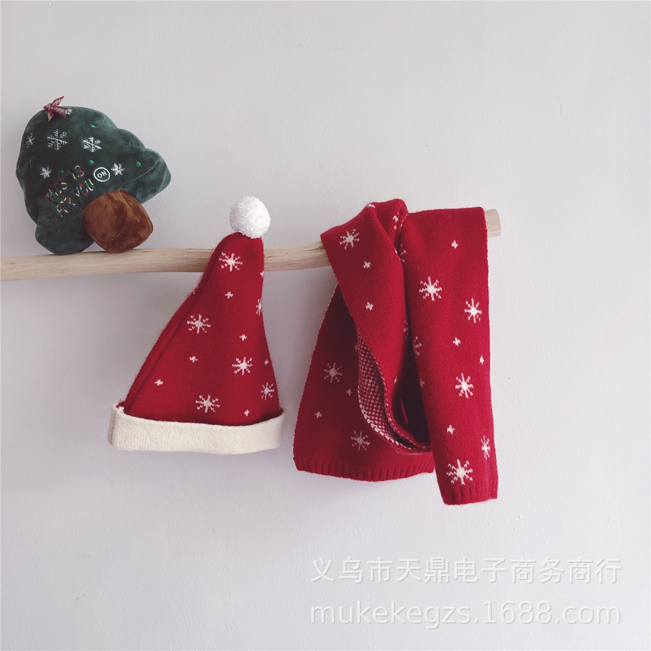 Korean Children’s Red Snowflake Hat Scarf Two-piece Set Winter Warm Christmas Gift Wool Hat Scarf