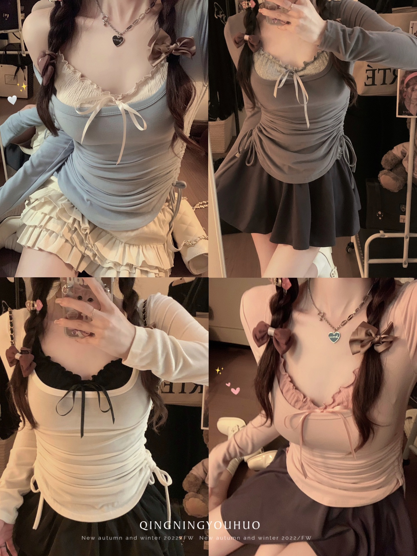 Temperament Shoulder Short Fashionable suit Women’s Spring Design Sense Slim-fit Inner Base Long Sleeve T-sleeve Two-piece Set