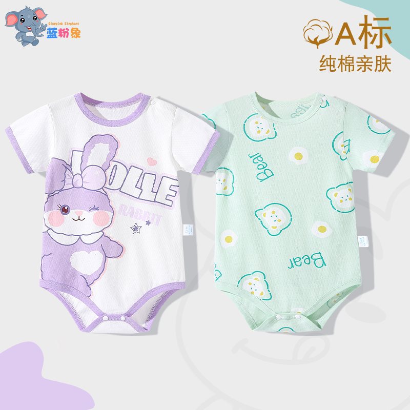 Newborn summer wear, boneless khaki, pure cotton, breathable short sleeves