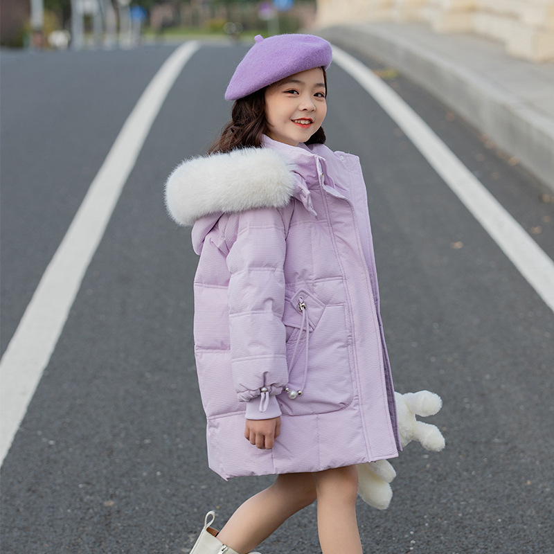 Children’s Down Jacket Girls’ Mid-length 2024 New Korean Style Girls White Duck Down Baby Stylist Thickened Coat Trendy