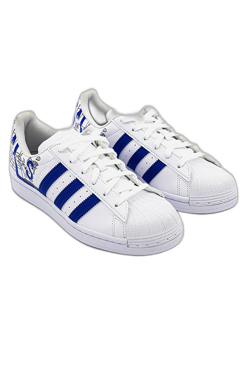 White and blue Superstar Shorts Shoes for kids, unisex.
