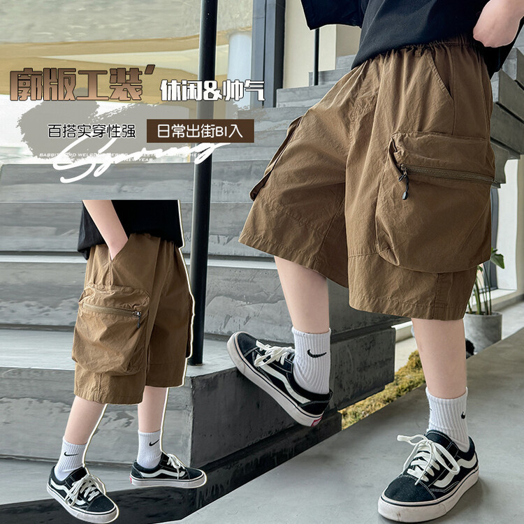 Boys’ Shorts Summer Pants 2024 New Style Mid-Big Children’s Summer Coil Pants Thin Children’s Summer Five-point Pants