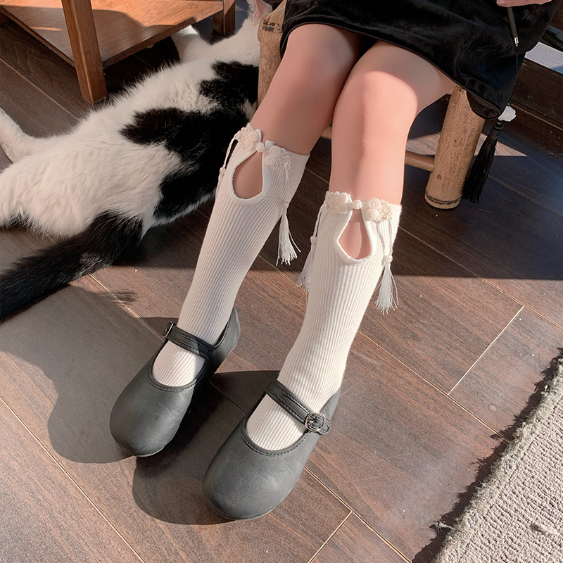 Hanfu Chinese style tassel children’s socks girls baby calf socks mid-calf socks catwalk show parent-child socks Spring