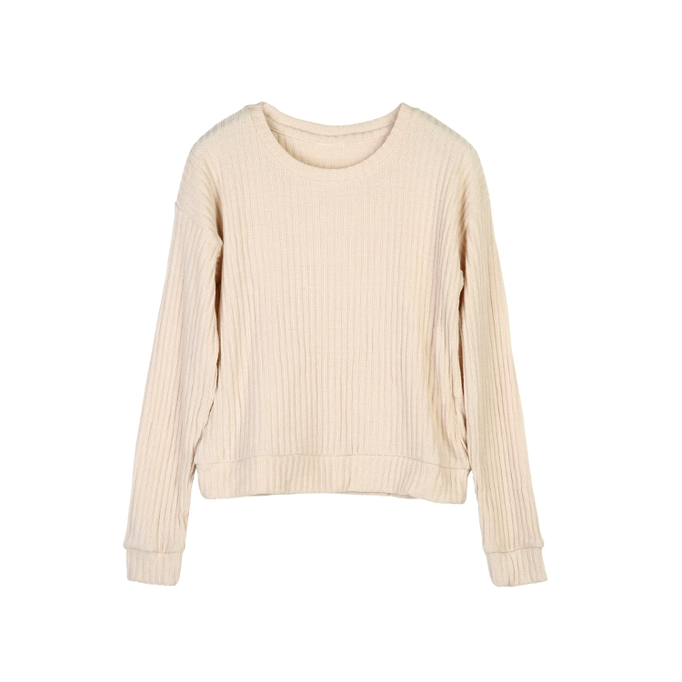 Foreign trade spring and autumn round neck short versatile solid color pullover
