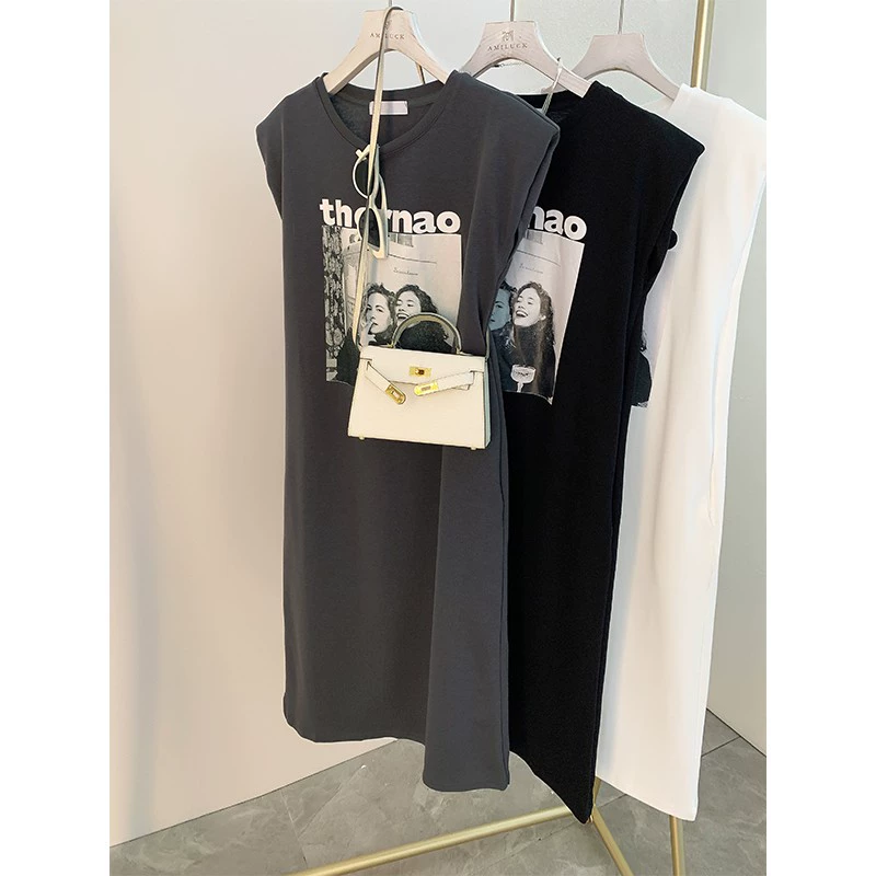 Printing shoulder dress 2023 Summer new Korean fashion cotton long skirt wild comfortable loose T -shirt skirt