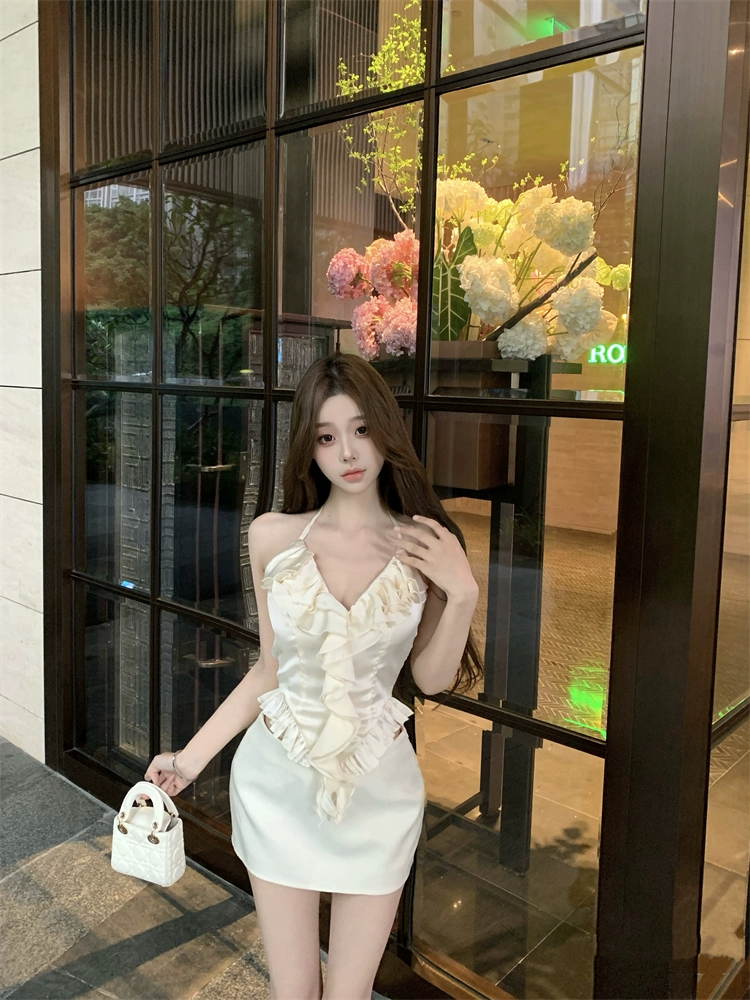 Ruffled summer sexy hip-covered skirt with neck hanger