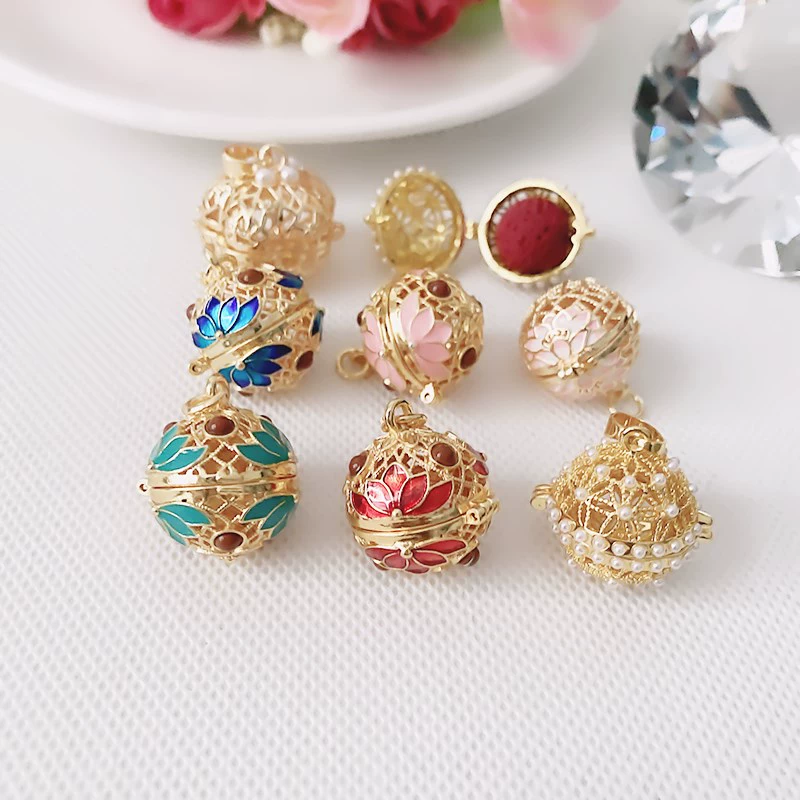 DIY Gufeng Hanfu Gong Bell Pendant Jingtai Blue Enamel Flower Blossom Essential Oil Sauce Capsule Cat Perfume Pendant