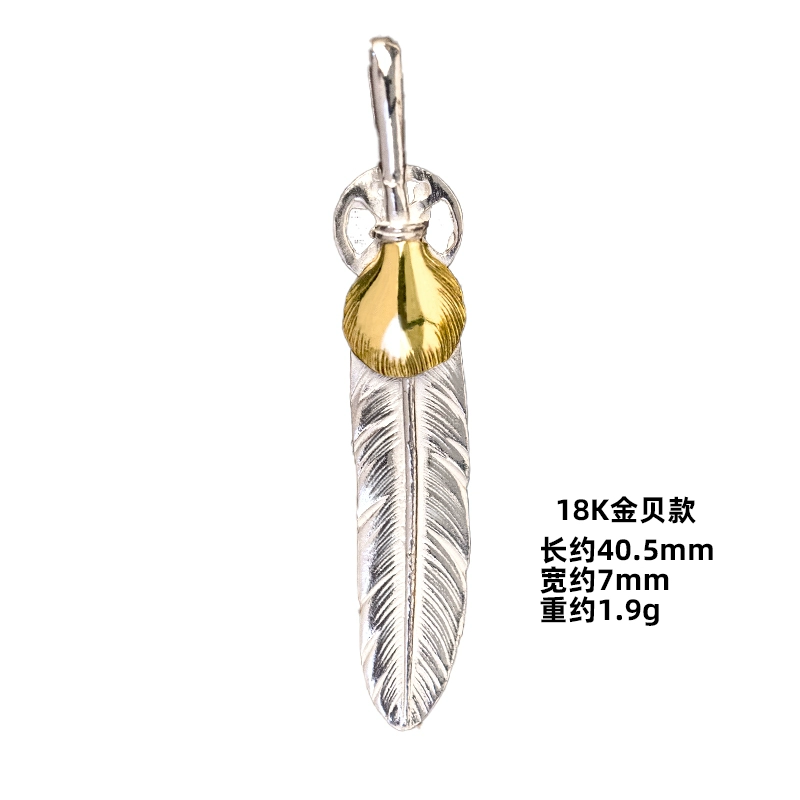 Yema Manor handmade goros Takahashi Feather Goro style 18K gold shell and silver shell M medium feather 925 pendant
