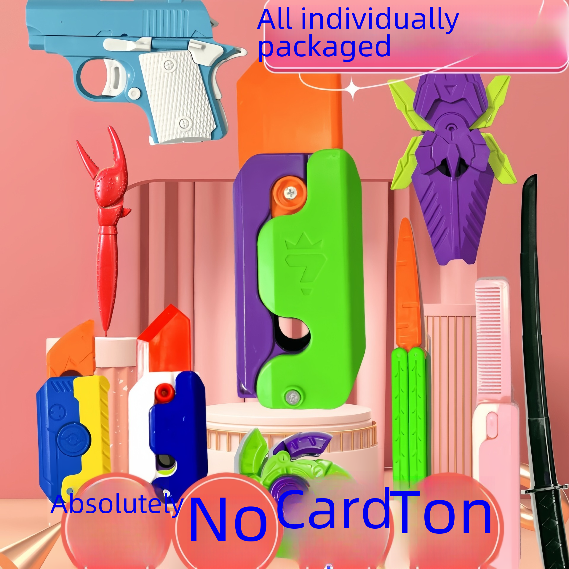 3D gravity radish knife online celebrity decompression direct jump knife toy plastic knife Q version super cute knife edc playing card