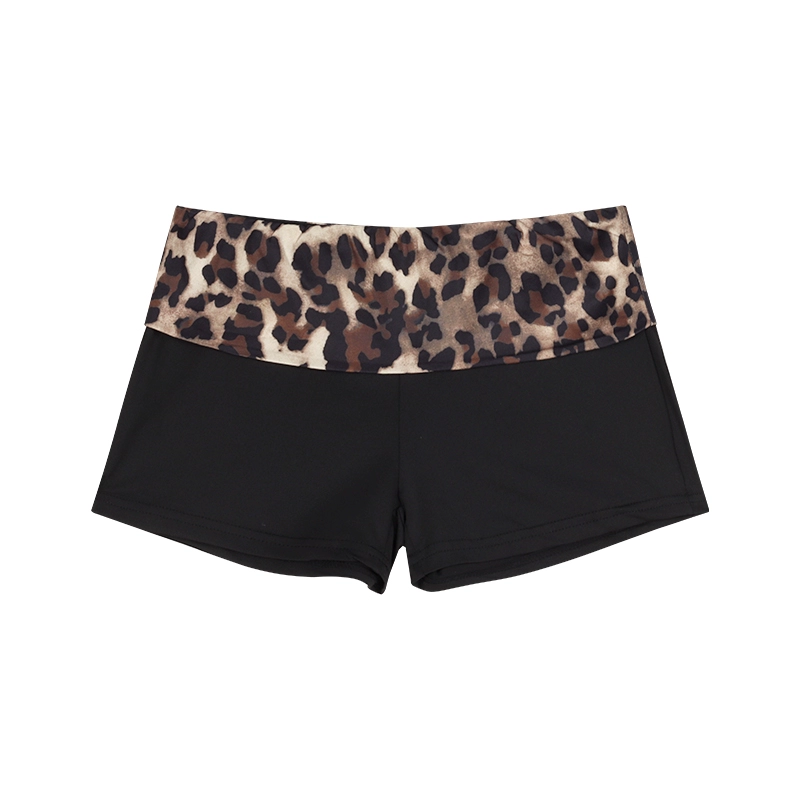 Leopard print spliced low waist tight shorts long sleeve T-shirt