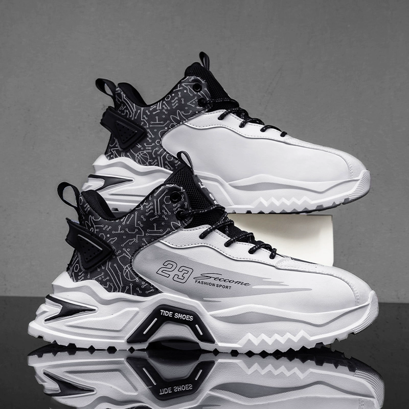 Men’s high-top basketball trendy shoes summer student sports 2023 new sneakers versatile heightening casual plus velvet cotton shoes