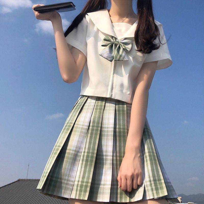 Really Ideal Original Genuine White No Ben Kansai lapel summer short sleeve shirt sailor suit jk uniform suit full set