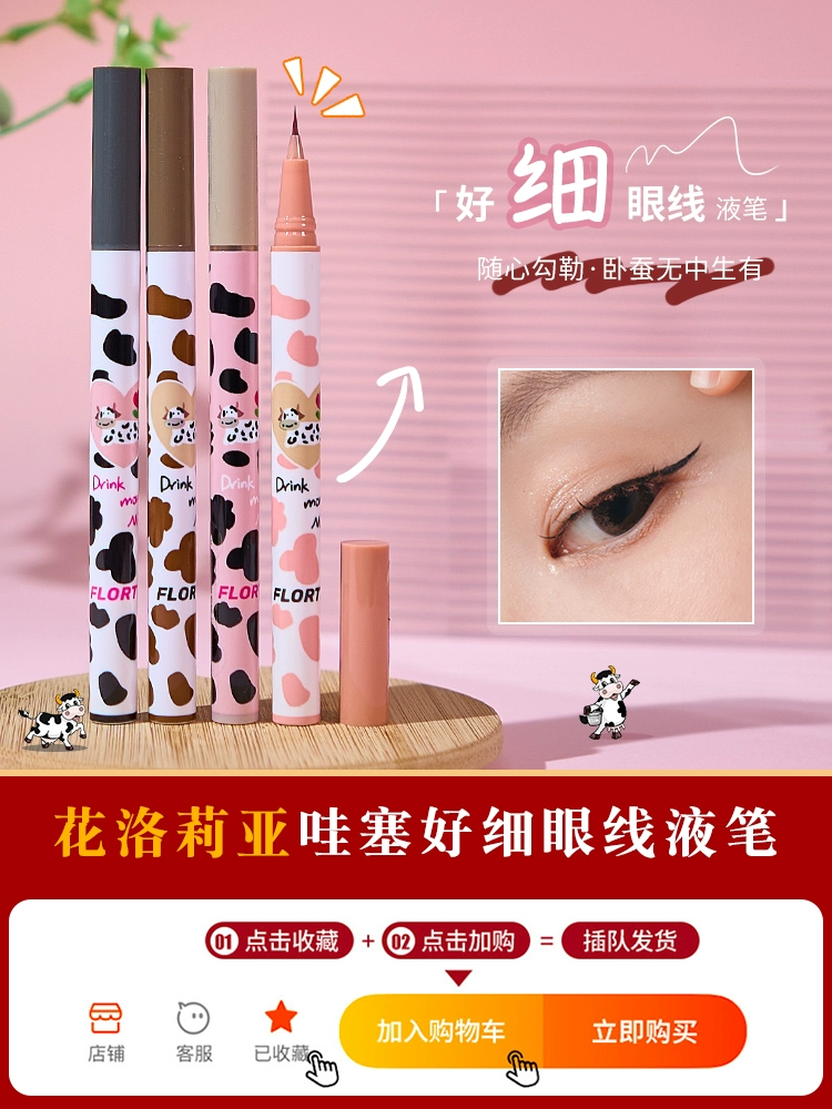 Special Clearance FLORTTE Flower Lolia Wow So Thin Silkworm Pen Eyeliner Liquid Pen Shadow Pen Brown Natural