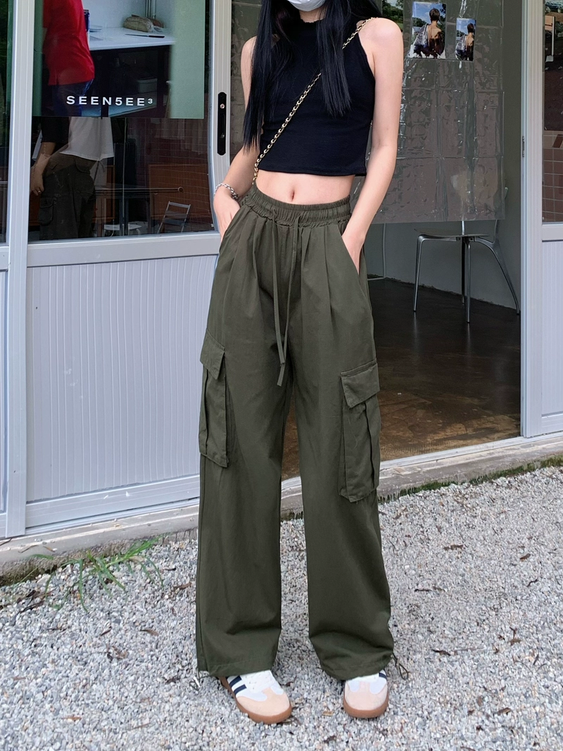 Retro thin high-waisted straight wide-leg casual pants