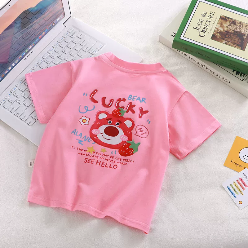 100% pure cotton short-sleeved T-shirt for boys and girls children’s summer 2024 new bear print baby fashionable cartoon top