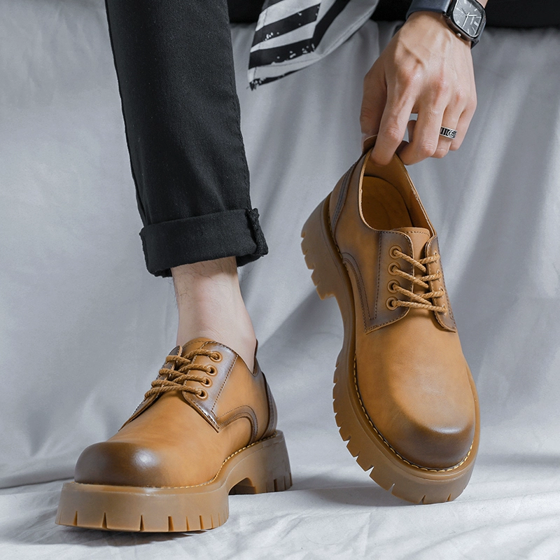 Leather shoes for men in autumn and winter, thin, versatile, high-end, casual, thick-soled, formal, business, British style, large-toe shoes for men