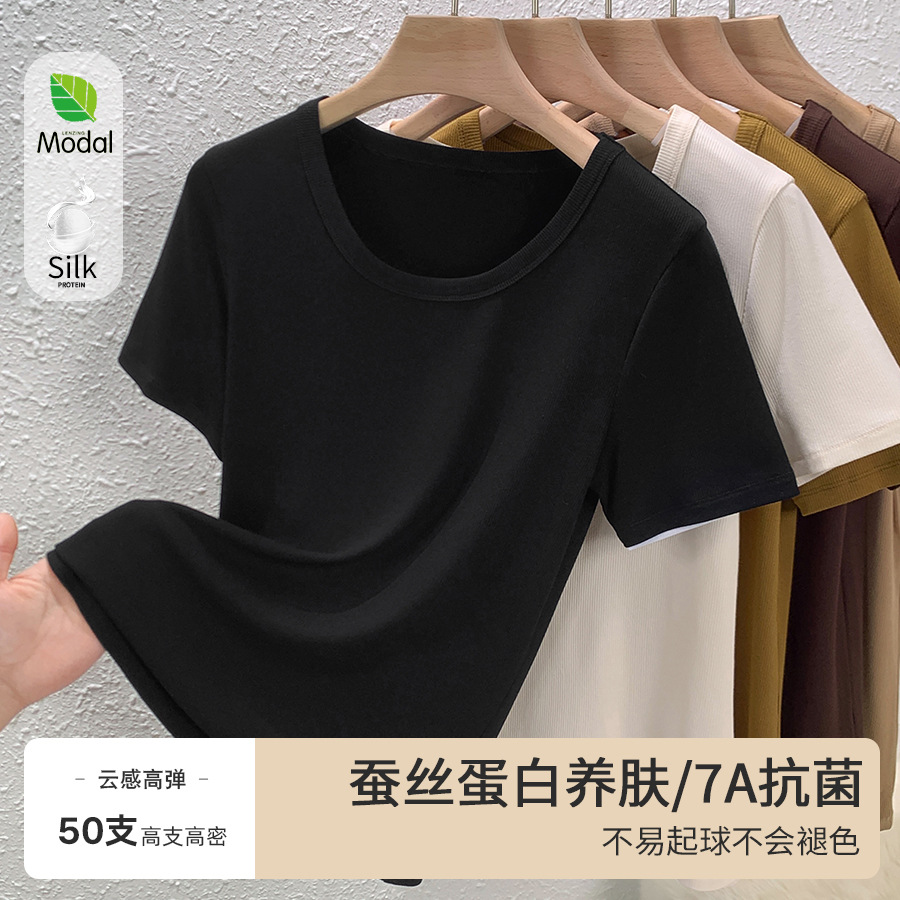 2024 Summer new large neckline shoulder Women’s T-shirt modal low round neck 1688 top white short sleeve t-shirt