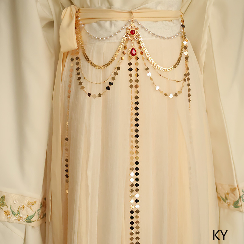 Ancient Costume Waist Chain Antique Waist Pendant Front Pressure Jade Tassel Hanfu dress Long Chain Horse-faced Skirt Accessories Belt