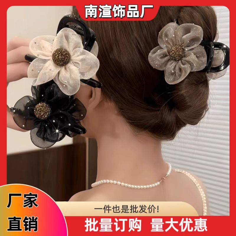 Summer 8cm mesh rhinestone flower clip, fashion Joker, horsetail ball head essential