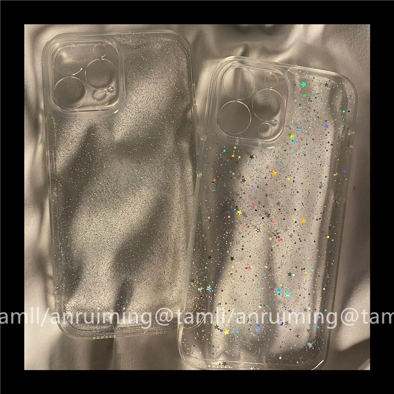 14PROMAX full screen, fine flash powder net red transparent suitable for iPhone13pro max Apple 11 mobile phone case XR/XSMAX/15Pro anti -drop iPhone12 silicone protective set female X
