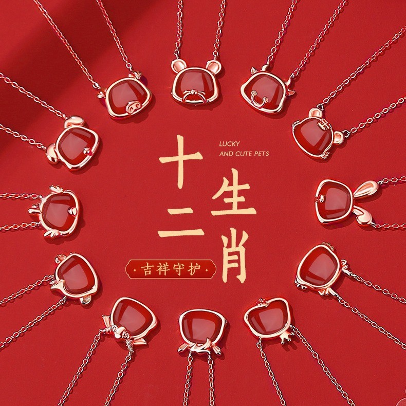 Zodiac necklace women’s simple all-match trendy animal year pendant national fashion new Chinese style imitation red agate necklace