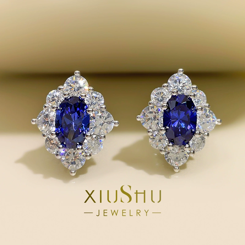 3 carat simulated tanzanite sapphire earrings for women, small, exquisite and high-end, internet celebrity high carbon diamond 925 sterling silver E82