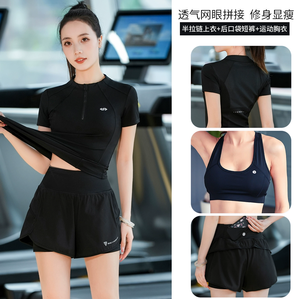 Morning jogging short-sleeved top in summer gym looking slim outdoor