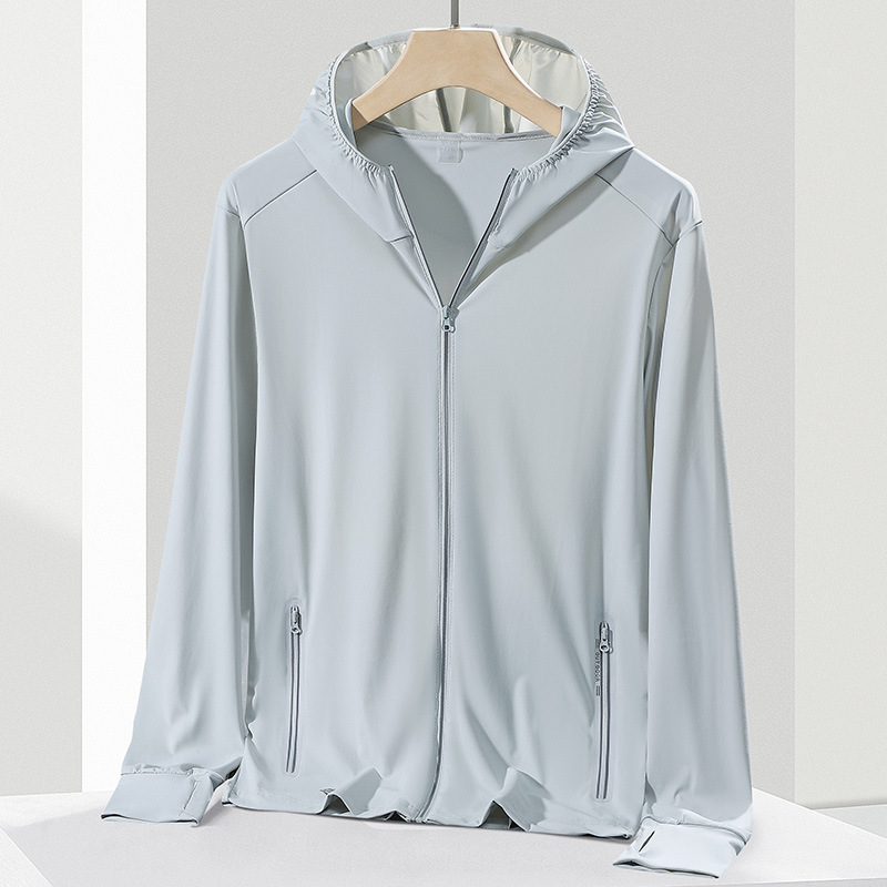 Summer Ice Silk Outdoor Leisure Cool-feeling Hooded Sports Couple’s Sun Protection Clothing Casual All-match Ice Silk Warp Knitted Jacket