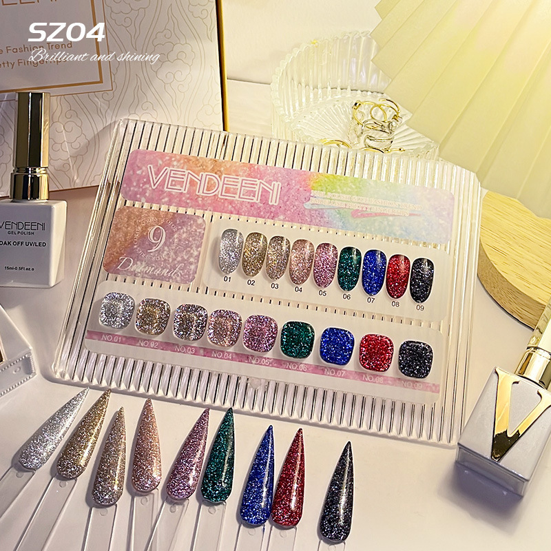 VSN Classic 9-color Flash Broken Diamond Glue SZ04 New Retro Green Gold Silver Black Red Joker Nail Shop Special