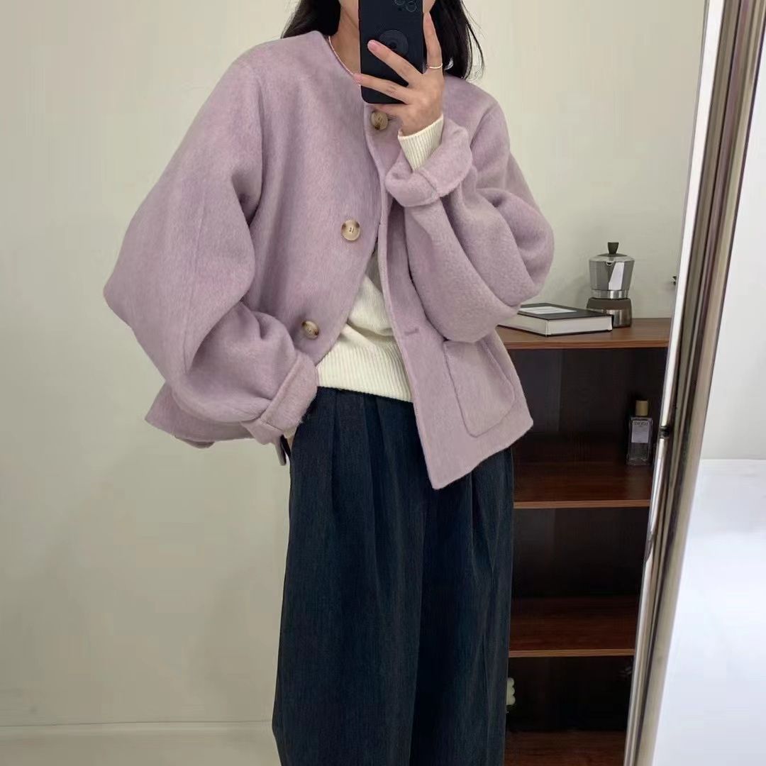 Early Spring New Double-sided Cashmere Coat Women’s Short Round Neck Wool Coat Trendy