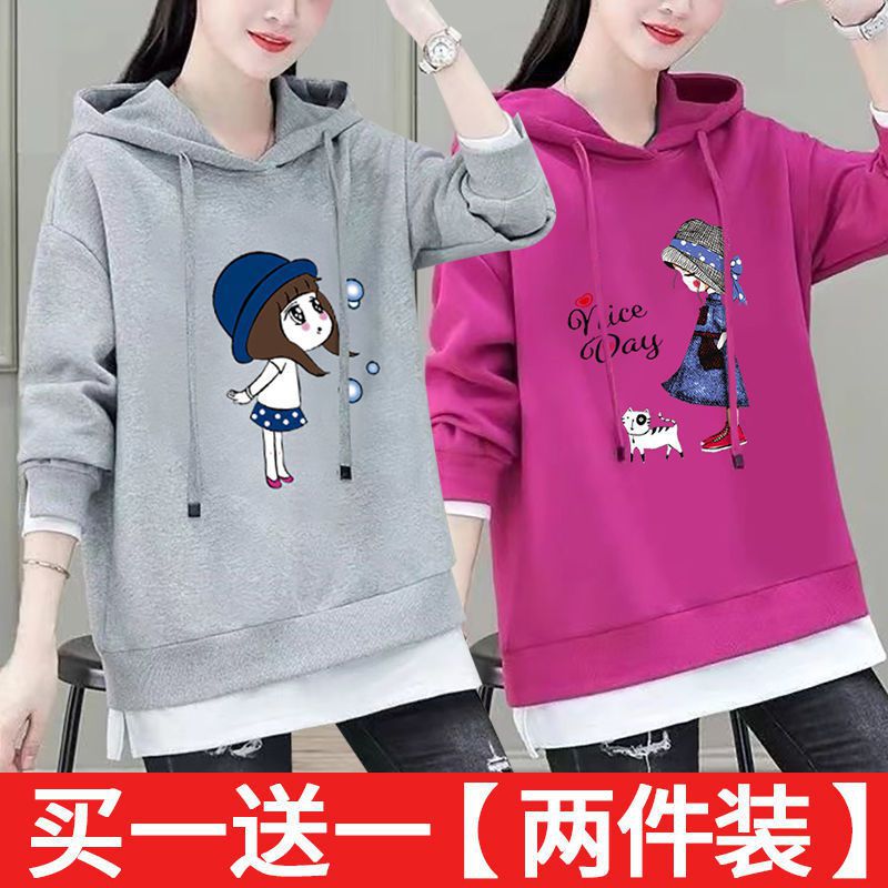 Single/Two-piece Cotton Fake Two-piece Sweatshirt Women’s Korean-style Loose plus size Spring and Autumn New Long-sleeved Top Coat Trendy
