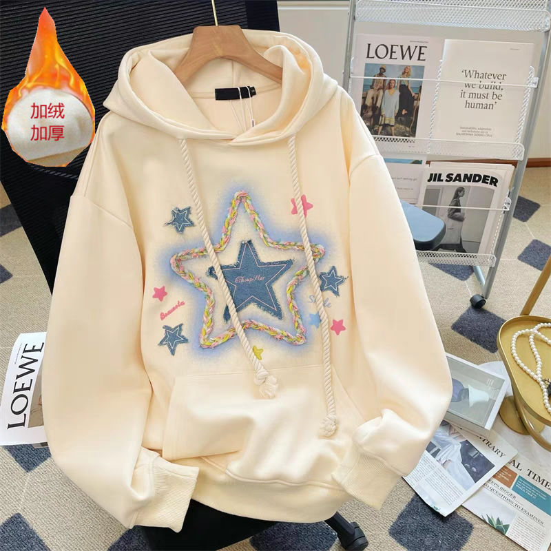 Autumn and Winter New Hooded Sweat Trendy Baby’s Stars Printed Girls Middle and Big Children’s Apricot Style All-match Outer Wear Top