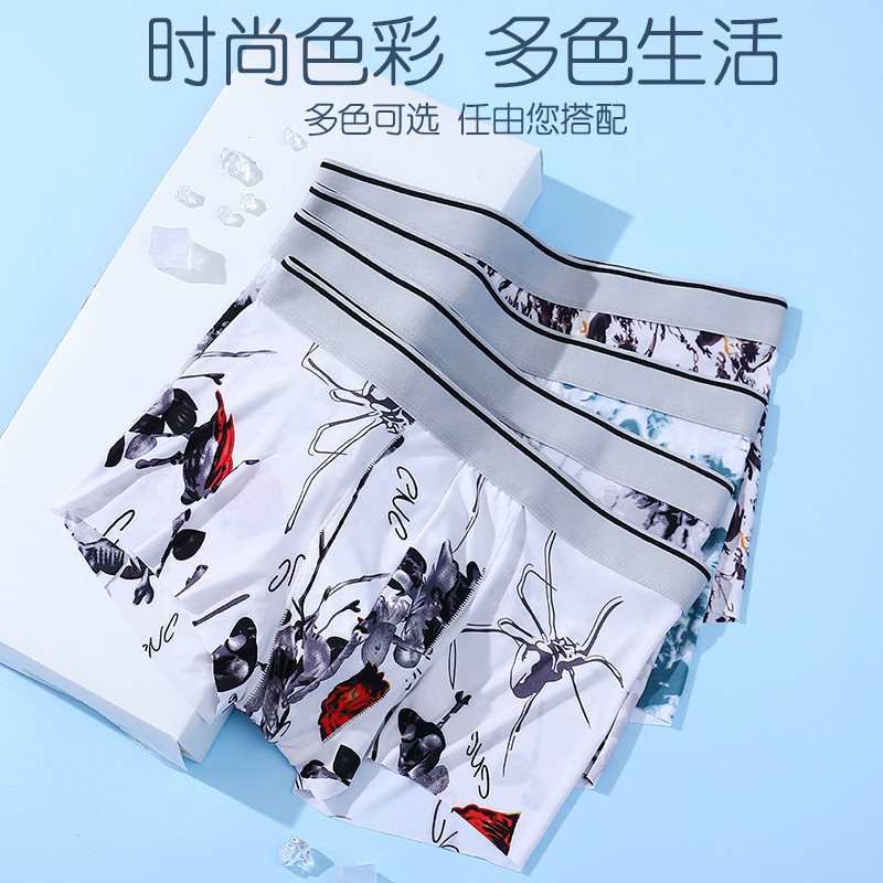Summer ice silk underwear men’s seamless printing cotton crotch waist men’s boxer shorts teenagers shorts factory generation hair