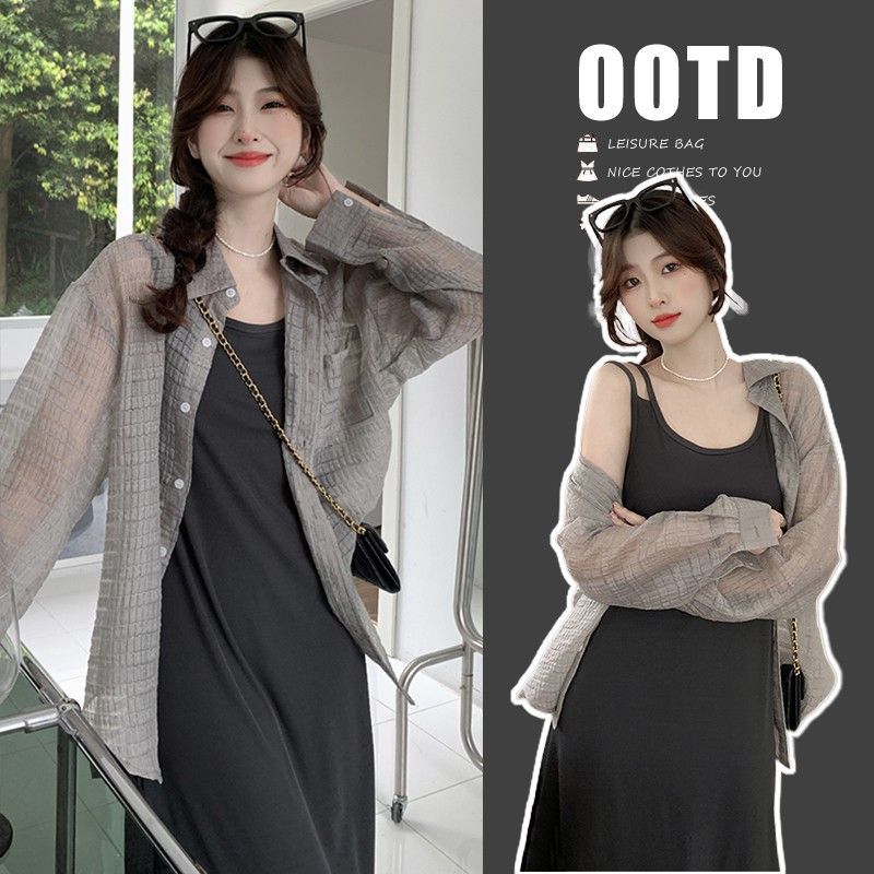 Pregnant Women dress suit Summer New Slim Vest Camisole Mid-length Long Sleeve Ice Silk Sun Protection Two-piece Set