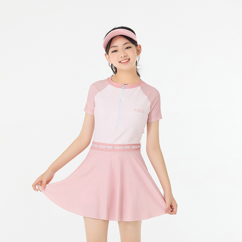 2024 New Sunshine girl children’s swimsuit Korean-style fashion zipper color matching one-piece dress big children’s swimsuit for women