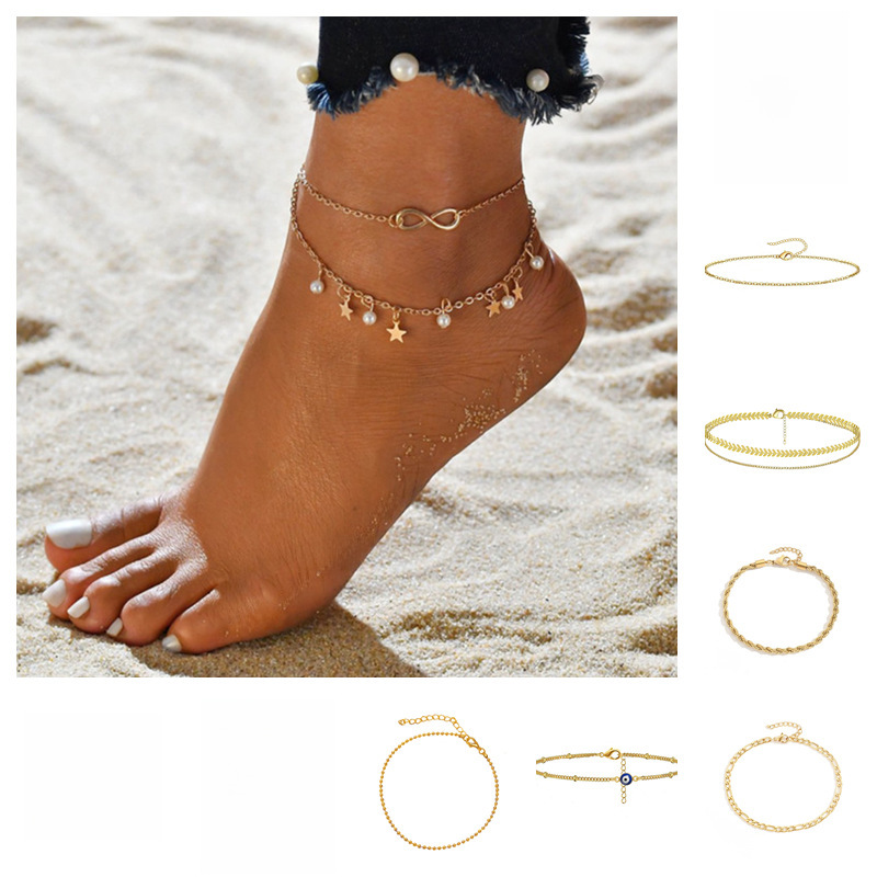 European and American cross-border jewelry bohemian adjustable summer anklet collection a variety of fashion alloy beach anklets