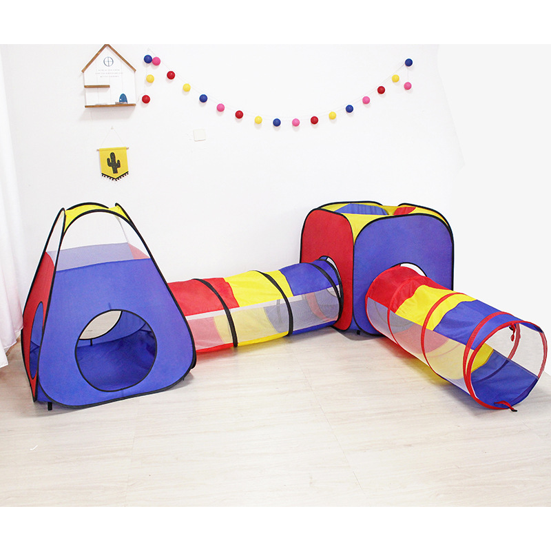 in stock children’s tent four-piece shooting ball pool tunnel channel ocean indoor and outdoor crawling folding game house four