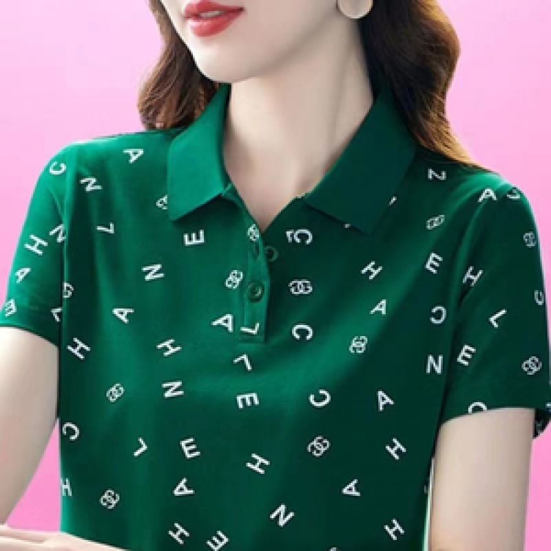 Short-sleeved T-shirt women’s summer 2024 new plus size mother’s summer lapel polo shirt with leader T-shirt top