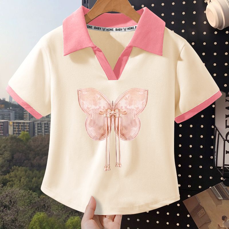 Girls’ New Chinese Turtleneck Shirt New Children’s Summer Dress National Style Short-sleeved Shirt Girls’ Top Trendy