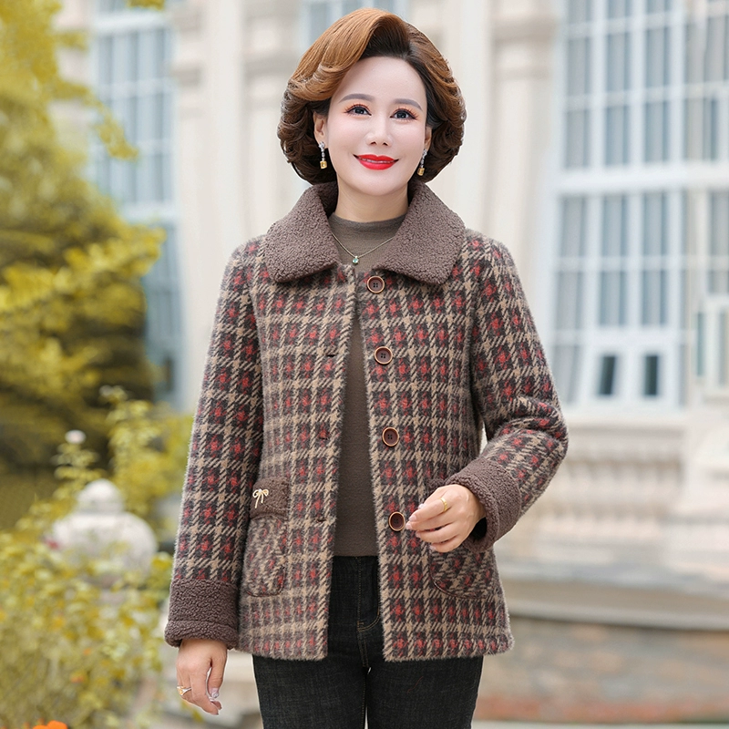 Mom autumn and winter short water mink velvet thickened woolen coat, foreign, middle -aged elderly woman warm and fluffy