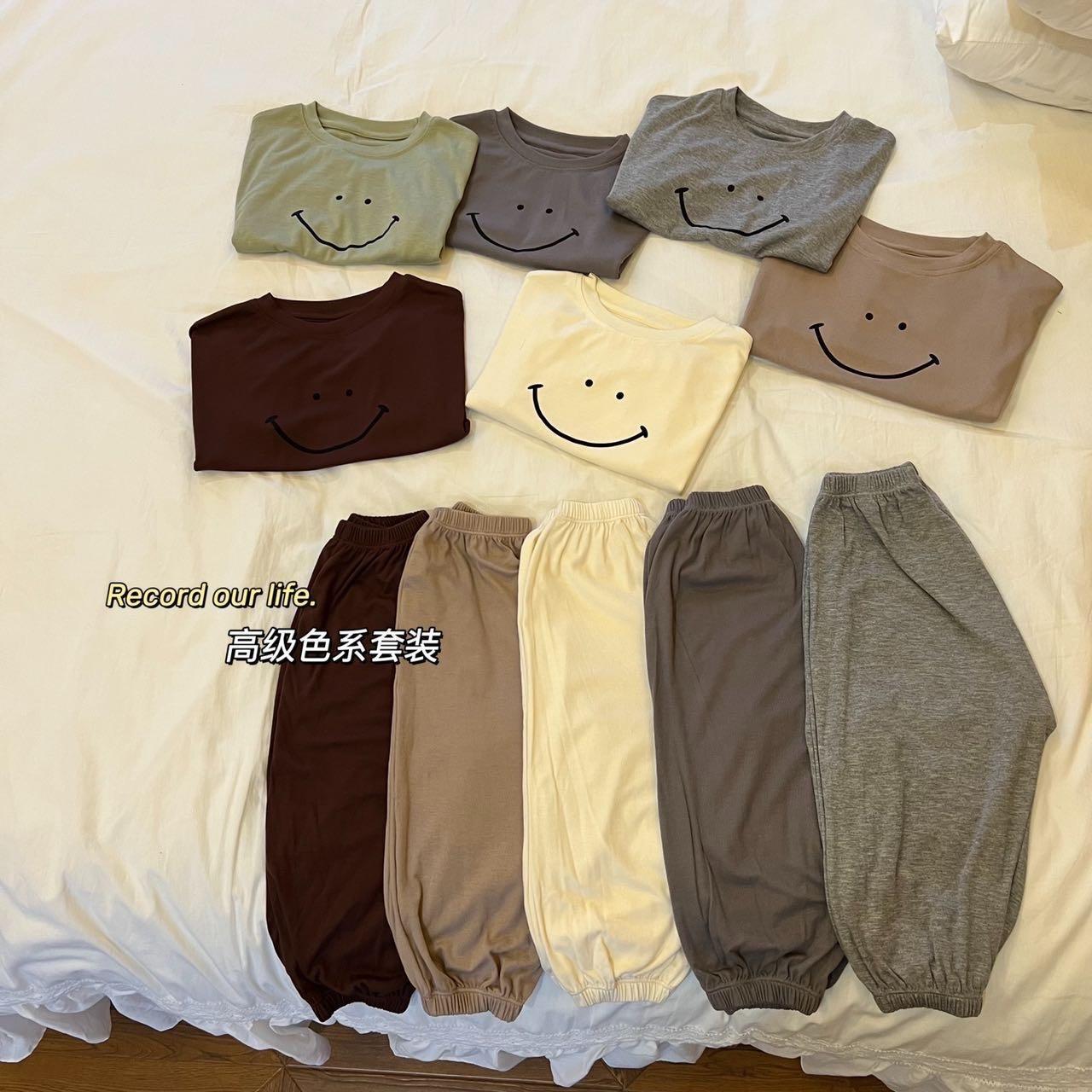 Skin-Friendly Soft Boy’s and Boy’s Modal Smiley Home Suit Baby’s Printed Outer-Wearing Two-Piece 0033