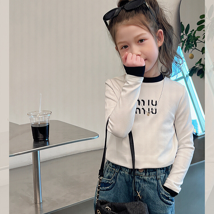 Girls’ Slim-fit Bottoming Shirt Children’s Long-sleeved White T-shirt Middle and Large Children’s Wear Inner Top Girls’ 2024 Spring New Style