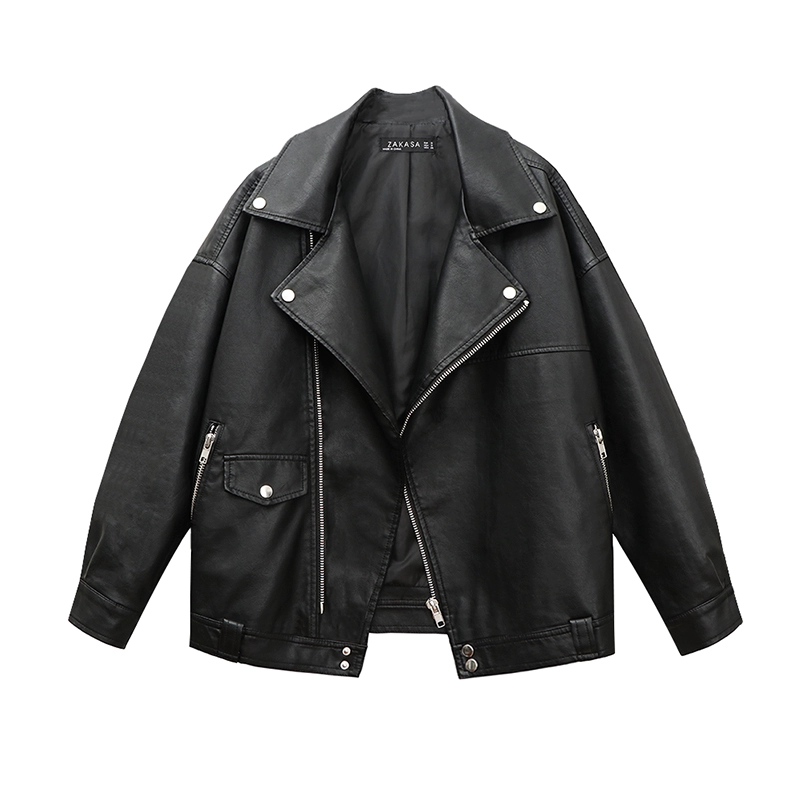 Black thickened and velvet short motorcycle jacket women’s leather jacket 2024 autumn new Korean style loose retro jacket popular