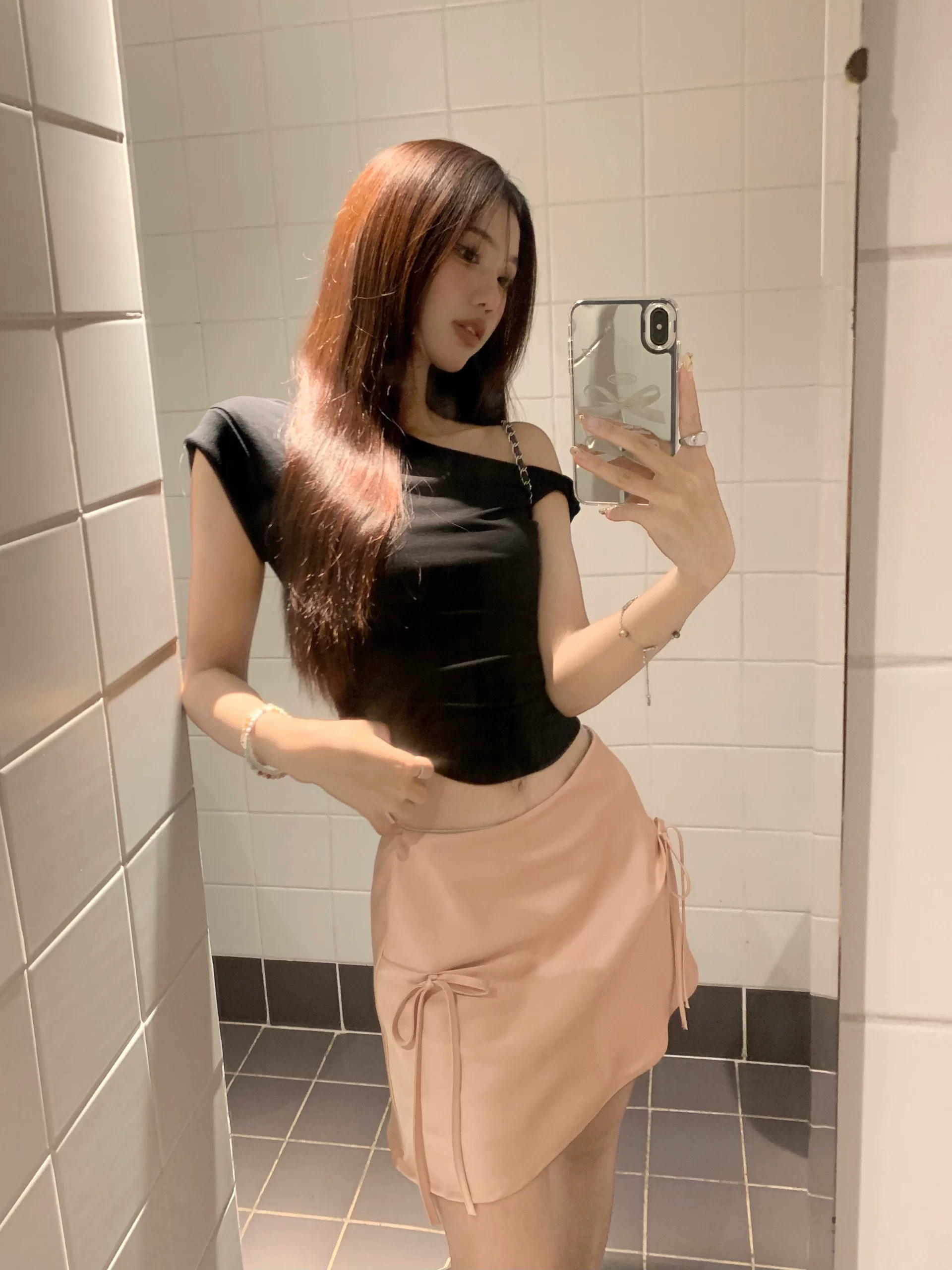 Black Graphic Print Women’s Crew Neck T-shirt with Short Sleeves.