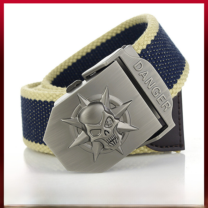Skull Alloy Thickened Canvas Belt Men’s Lined Student Sports Youth Automatic Buckle Jeans Belt