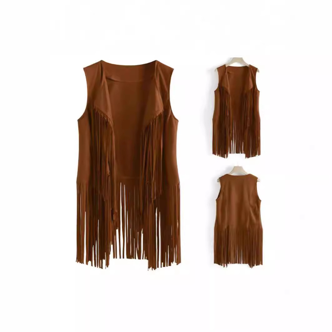 AliExpress Amazon European and American New Tassel Coat Women’s Deerskin Velvet Buckle-Free Long Vest Vest Jacket