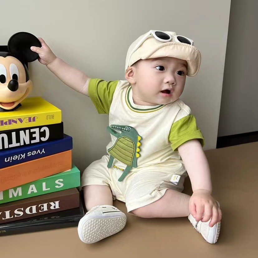 Summer Baby Boy’s Suit 2024 Newborn Cartoon Dinosaur Short-sleeved Suit Summer Thin Clothes Climbing Suit
