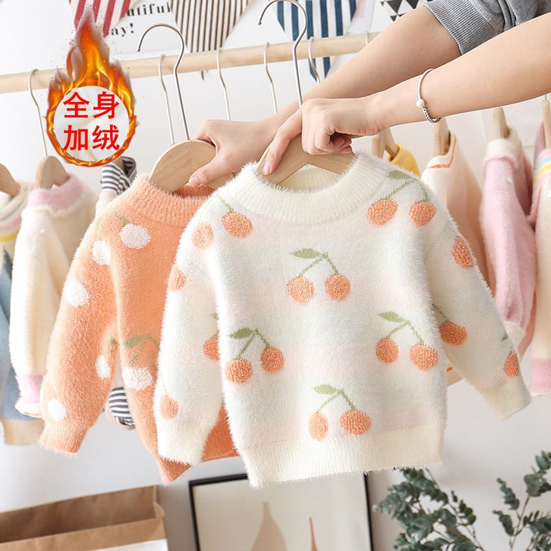 Girls’ Sweater fleece-lined Thickened Mink Velvet Winter Base Shirt Baby Stylist Warm Top Children’s Knitted Sweater