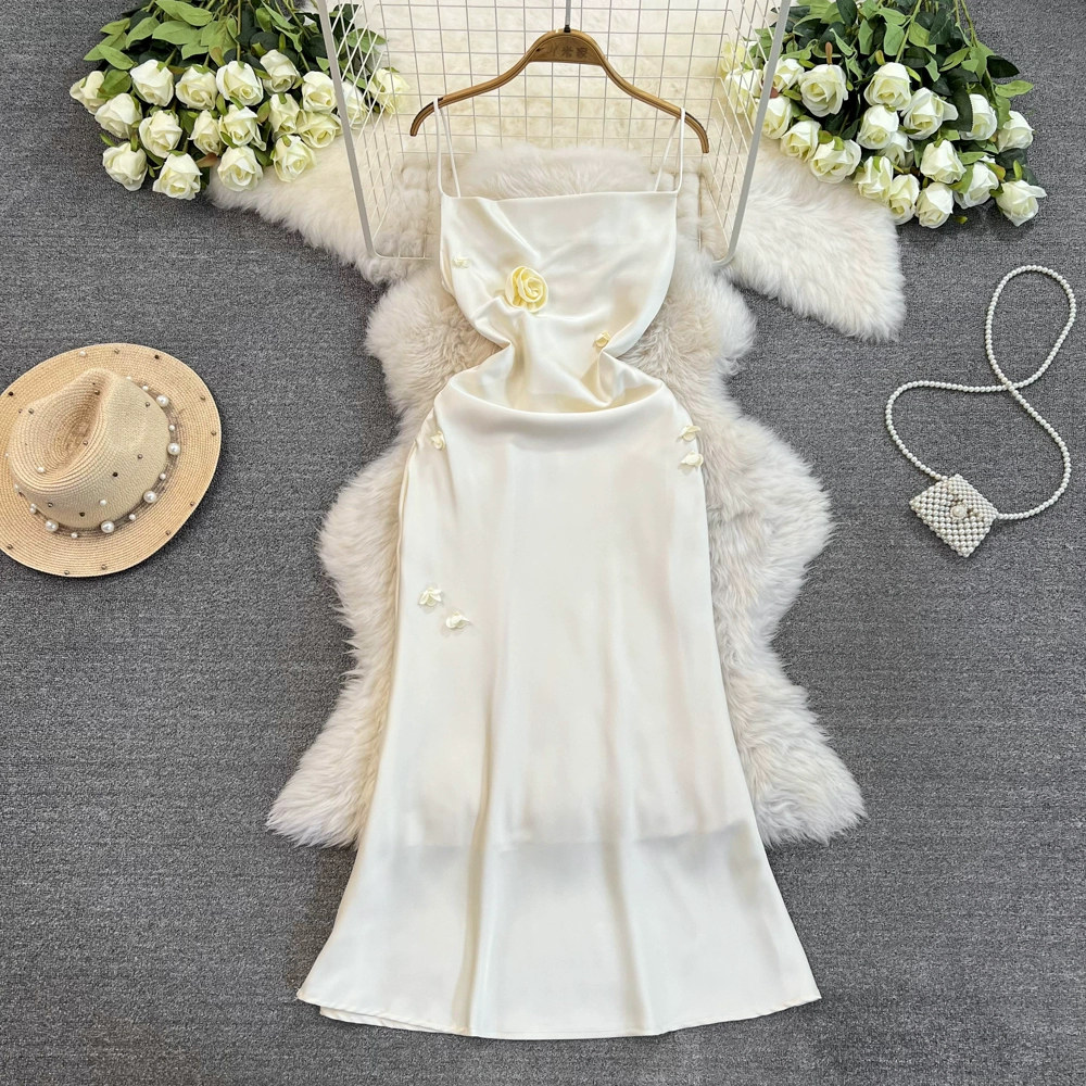 2024 new summer women’s clothing pure handmade three-dimensional flower waist waist temperament suspender skirt hip skirt fishtail dress